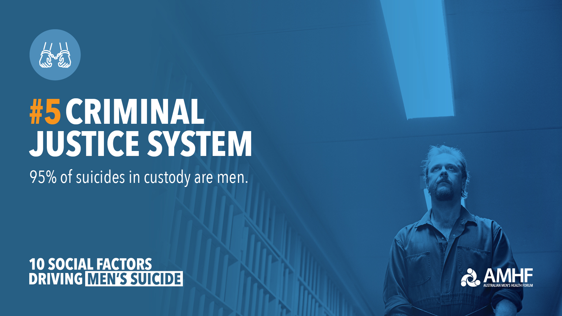 95% of suicides in custody are male and people leaving prisons are estimated to be at 7x higher risk of suicide than the general population.