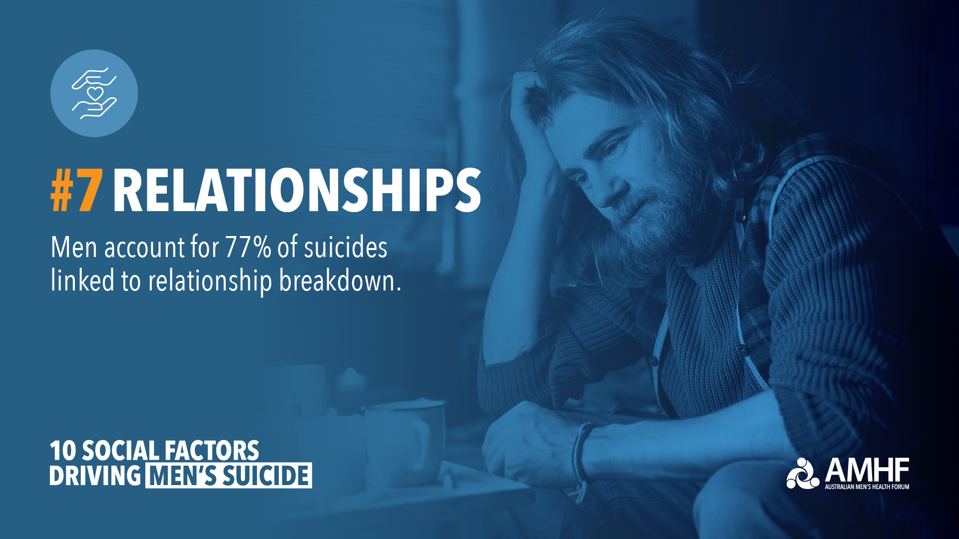 Men also account for 77% of suicides where relationship separation or divorce are a contributing factor.